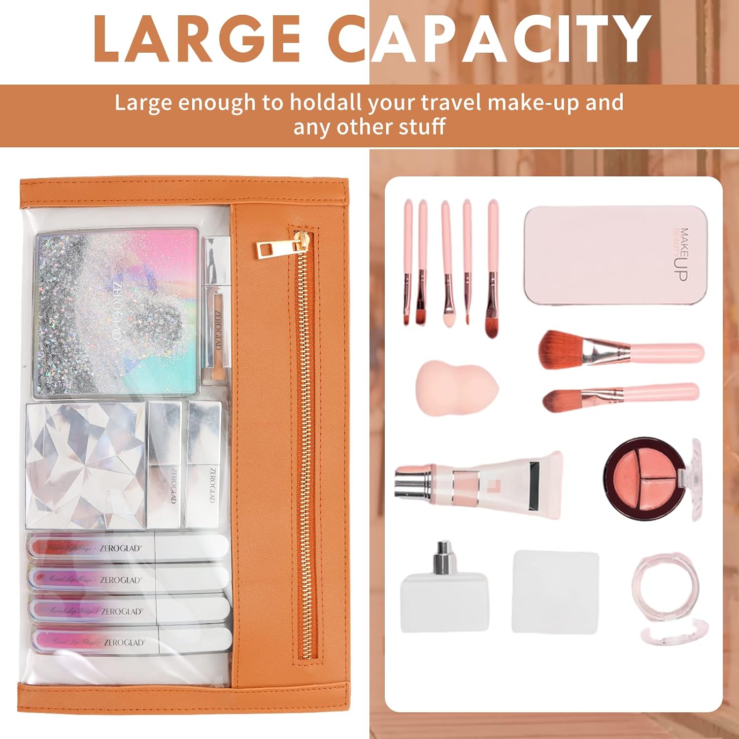 Leather Makeup Bag with Clear Windows