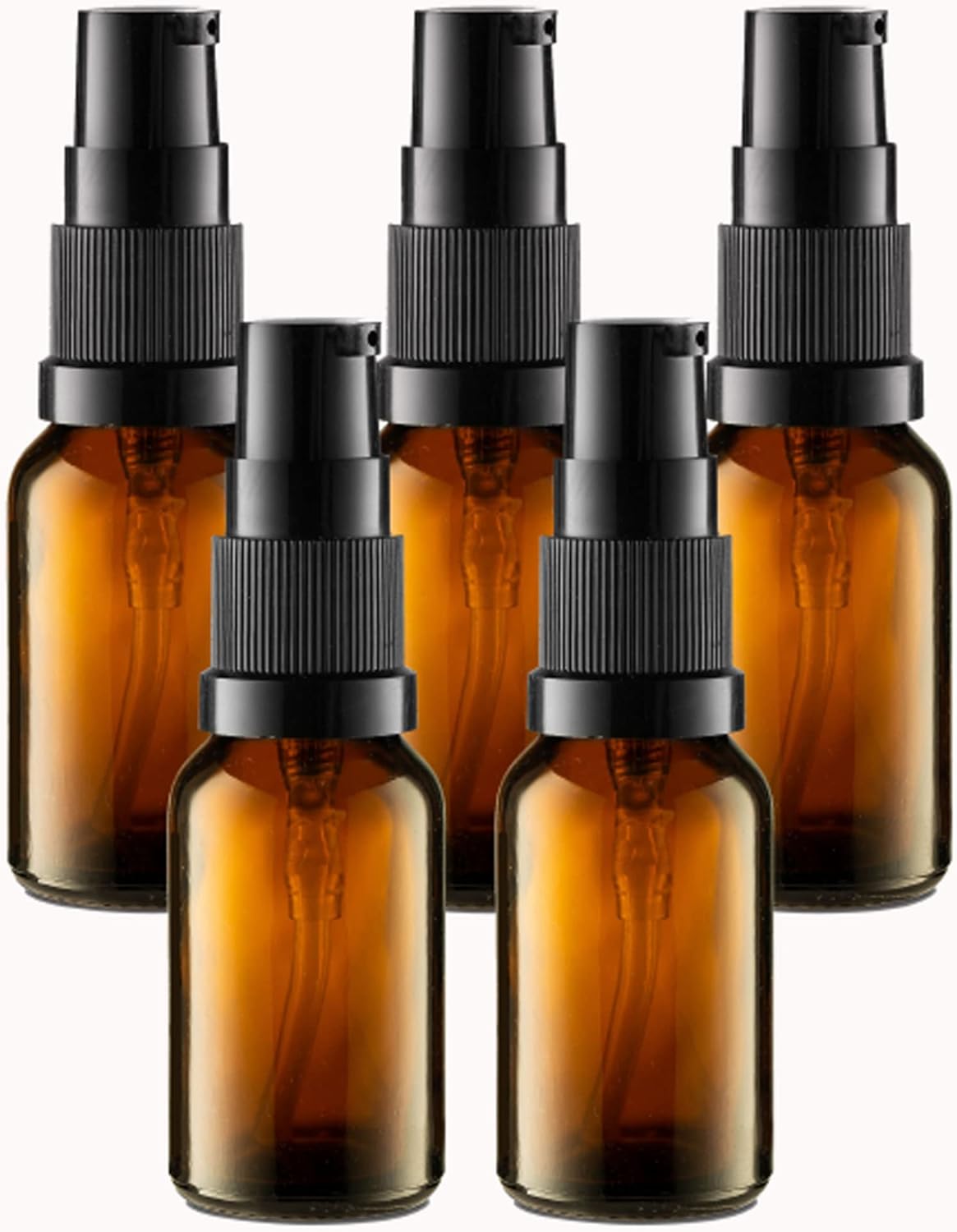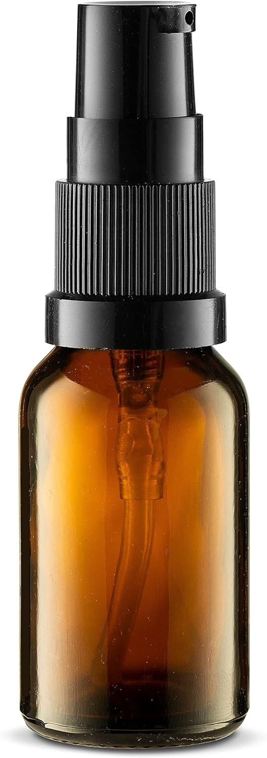 Pack of 5 amber glass bottles (15ml) for creams, oils, and lotions. Reusable, TSA-approved size, leak-proof, and perfect for travel.